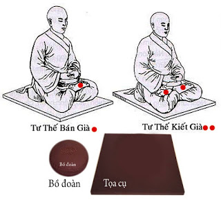 Bồ đoàn, tùy theo cơ thể lựa chọn loại phù hợp bản thân. Thường Bồ đoàn cao 5-7cm. Tấm nệm nhỏ để lót phía dưới bồ đoàn.