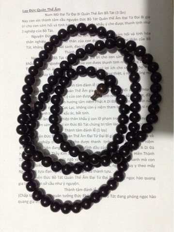 Do mới niệm Phật nên tôi cần một sâu chuỗi để nương vào đó niệm Phật. Bản thân suy nghĩ phải tìm kiếm sợi chuỗi, đi đến vài chỗ, như những chỗ bán đá phong thuỷ hay chùa, vừa có ý định mua thì chợt bản thân có cái gì đó làm mình dừng lại, trong đầu suy nghĩ nếu lấy những sợi chuỗi như thế này thì bình thường quá…