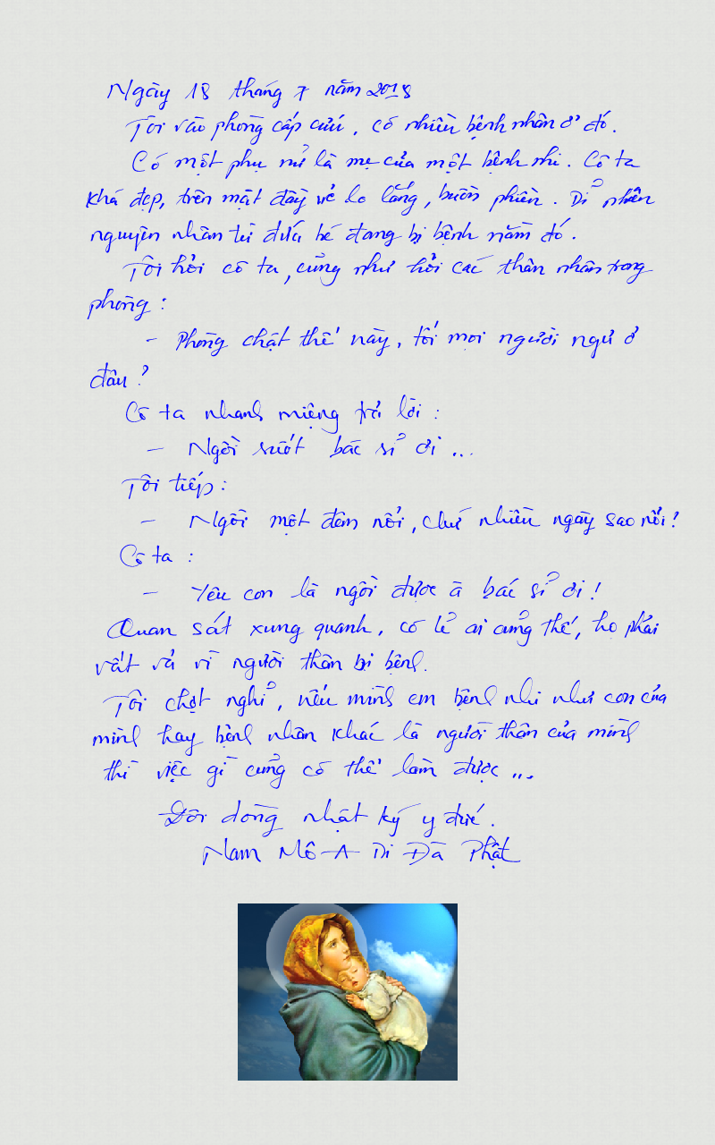 Tôi chợt nghĩ, nếu mình xem bệnh nhi như con của mình hay bệnh nhân khác là người thân của mình thì việc gì cũng có thể làm được…