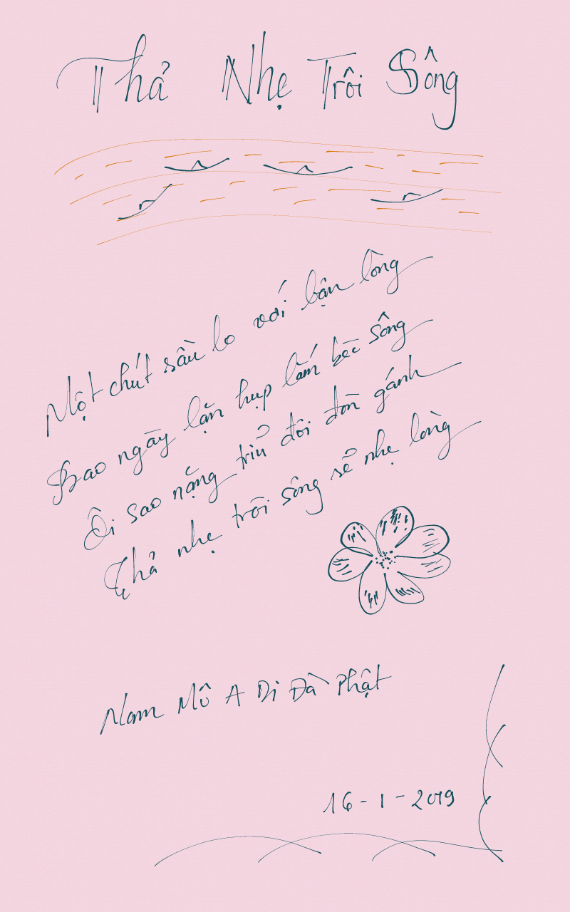Thi văn Thả Nhẹ Trôi Sông Đăng bởi Đường giải thoát on 29 Th6 20198 Th12 2019 Thi Văn: Thả Nhẹ Trôi Sông Ngày 16/1/2019 *** Một chút sầu lo với bận lòng Bao ngày lặn hụp lắm bèo sông Ôi sao nặng trĩu đôi đòn gánh Thả nhẹ trôi sông sẽ nhẹ lòng. ***** Nam Mô A Di Đà Phật Chia sẻ: Nhấp để chia sẻ trên X (Mở trong cửa sổ mới) X Nhấn vào chia sẻ trên Facebook (Mở trong cửa sổ mới) Facebook Bấm để chia sẻ lên LinkedIn (Mở trong cửa sổ mới) LinkedIn Bấm để gửi một liên kết tới bạn bè (Mở trong cửa sổ mới) Email Thích Đang tải... Đăng bởi Đường giải thoát Hoằng Truyền Chánh Pháp Vãng Sanh Cực Lạc Xem tất cả bài viết bởi Đường giải thoát