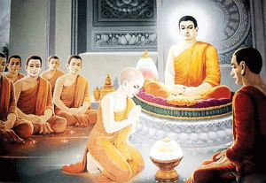 Trưởng lão Xá-Lợi-Phất, Đại Mục-Kiền-Liên, Đại Ca-Diếp, Ma-Ha Ca-Chiên-Diên, Ma-Ha Câu-Hy-La, Ly-Bà-Đa, Châu-Lợi-Bàn-Đà-Già, Na-Đà, A-Nan-Đà, La-Hầu-La, Kiều-Phạm-Ba-Đề, Tân Đầu-Lư-Phả-La-Đọa, Ca-Lưu-Đà-Di, Ma-Ha Kiếp Tân Na, Bạc-Câu-La, A-Nâu-Lầu-Đà, những vị đại đệ tử như thế.